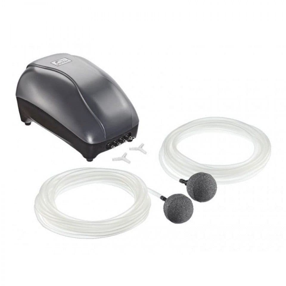 The Pontec PondoAir 200 is a pond pump for oxygen enrichment in the pond covering an area of up to 2x5m inclusing the hose needed and 2 air stones. The Pontec PondoAir 200 has a low energy cost and is quiet.